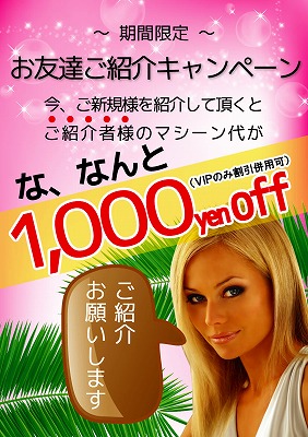 ご紹介者様の当日のマシーン代が1000円OFFになるんですv( ̄Д ̄)v イエーイ