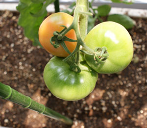 ついに、トマトに色味がついてきました。v(。-_-。)vブイッ♪