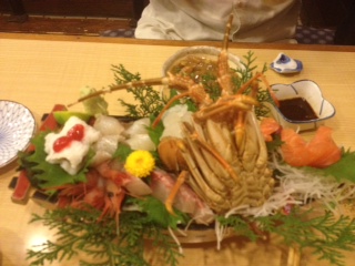 伊勢えびの姿造りは舟盛にしてくれて、造りを食べ終わると、乗ってる伊勢えびの
