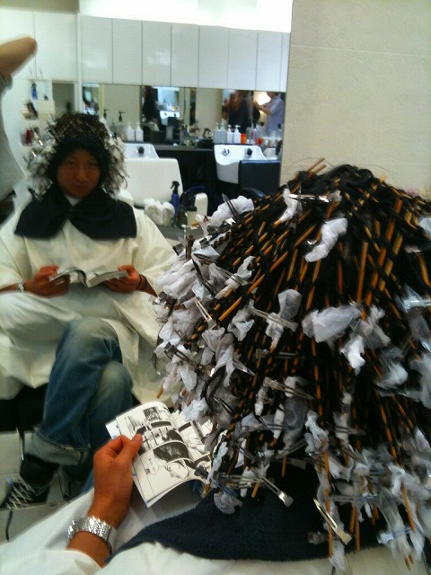 気が付くと髪の毛に竹串が200本以上ついていました(;゚д゚)